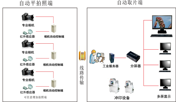 此項目主要通過公司定制開發的軟件讓游客經過時能領略全球各地的風光,通過無線裝置對相機進行控制拍照,游客的每一張笑臉都被拍出來并可與軟件里的各地風景瞬間合成,通過專業的沖印設備即時出片讓游客帶走,特別是一些國外的游客對此樂不疲此,給游客一張永恒的紀念!